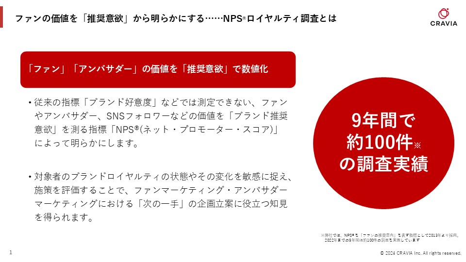 NPSロイヤルティ調査 アンバサダー/ファン/公式SNSフォロワーの価値を「推奨意欲」から明らかにする アンバサダープログラムに関するお問い合わせ 資料請求 お問い合わせ ファンマーケティングのトピックスをnoteで更新中! Page top